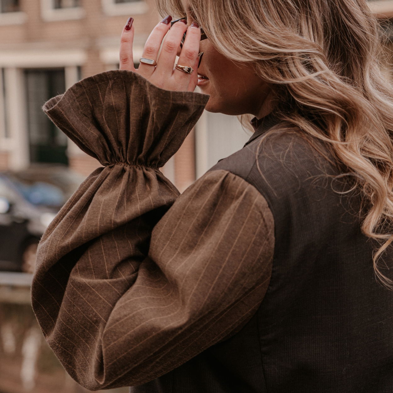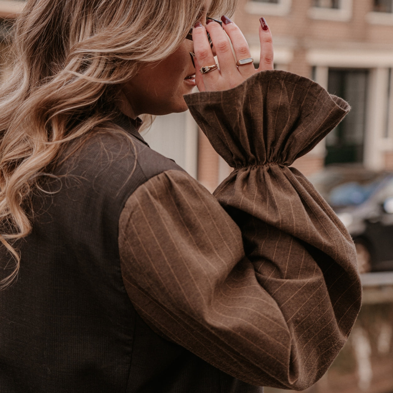 Uniek detail: verfijnde plooien in de mouwen voor een speelse afwerking